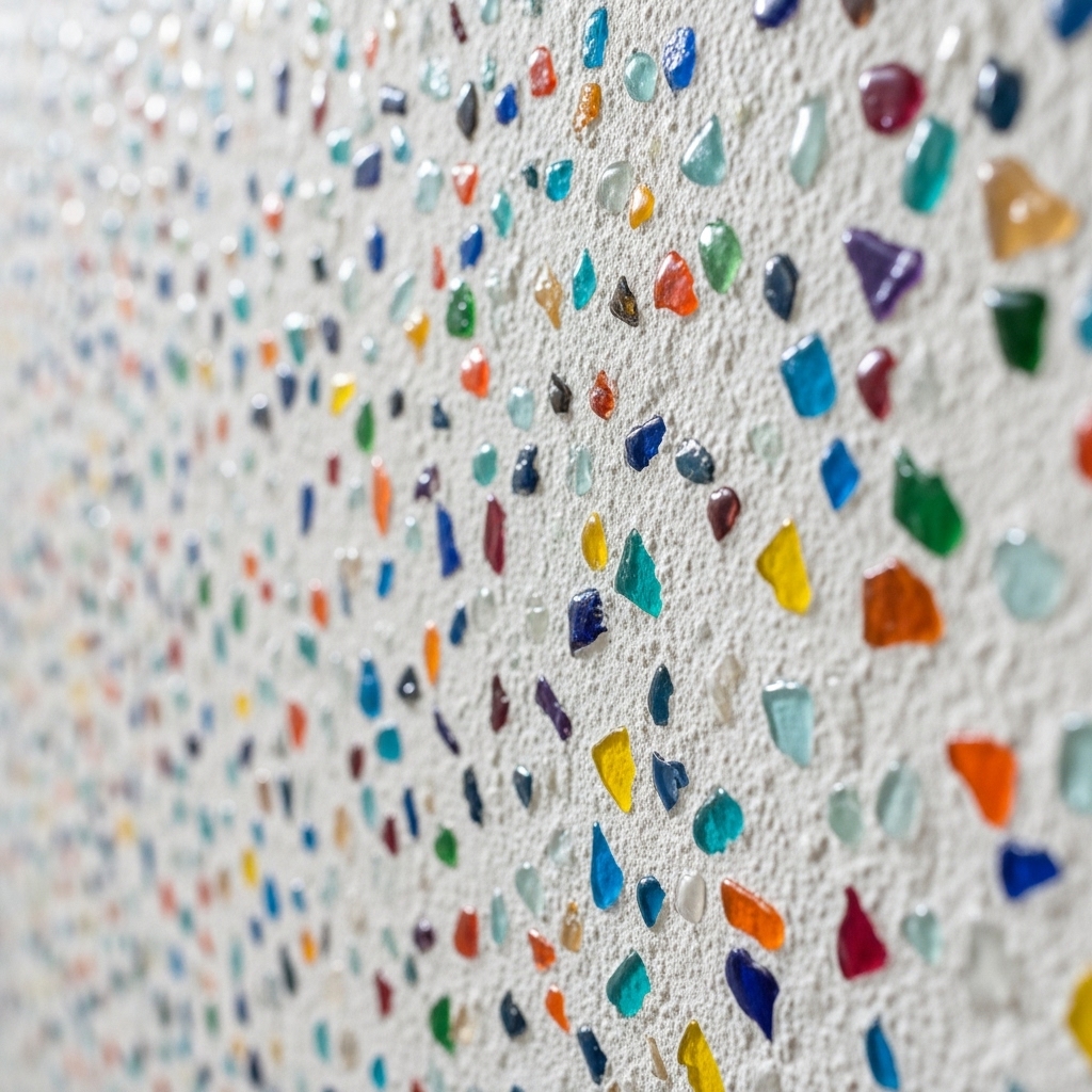 INTONACO MURRINO è un materiale composto da selezionati frammenti e polveri di marmo, calce idraulica e raffinati additivi che conferiscono facilità di applicazione e perfetto ancoraggio al supporto. Grazie alla sua particolare composizione minerale, il prodotto ha una buona resistenza all'umidità, alle muffe ed ha un'elevatissima traspirabilità. Questa finitura permette di realizzare una finitura ad intonaco impreziosito da scaglie di vetro colorato.