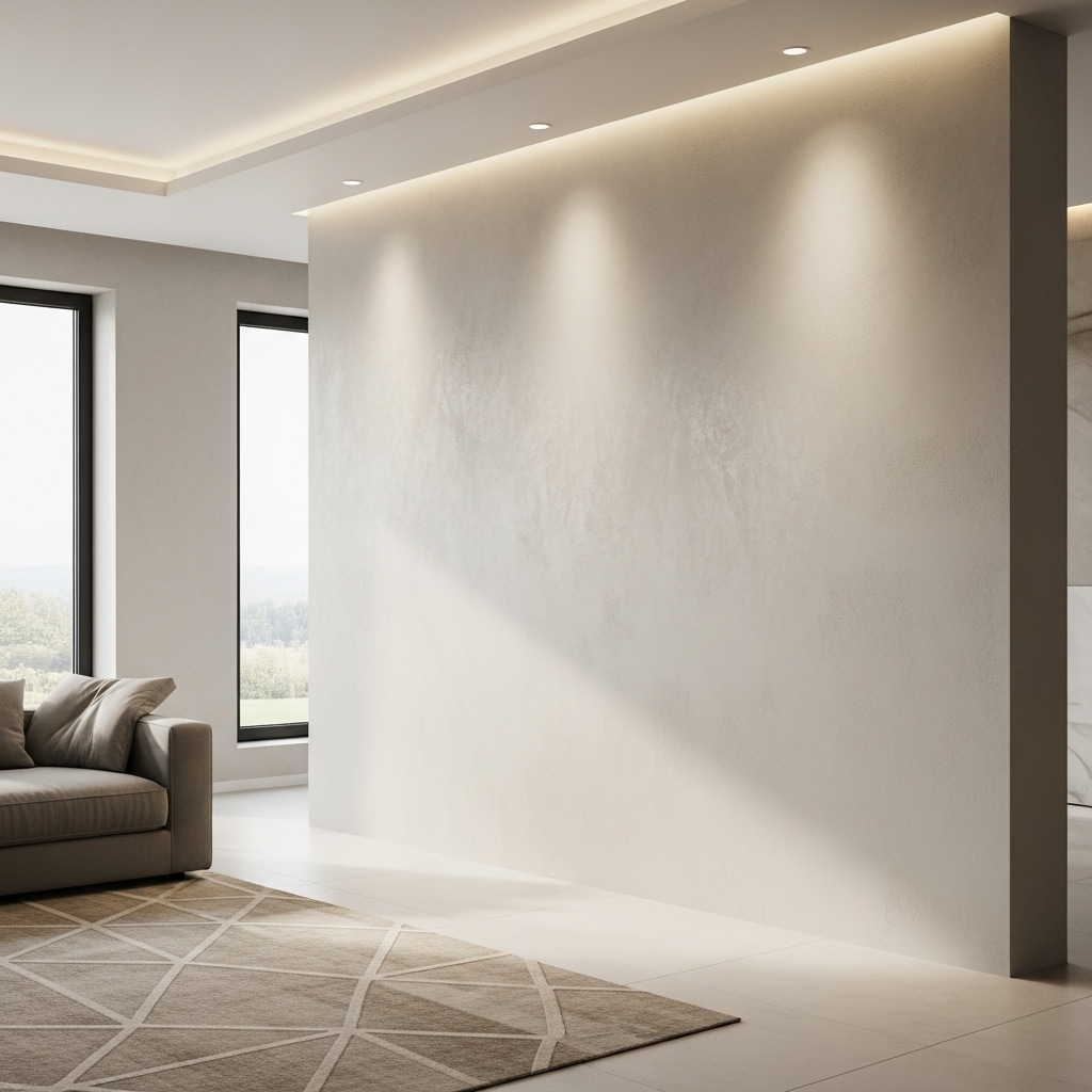 MARMORINO POLVERE MEDIA is a material composed of selected marble powders, hydrated lime, hydraulic binders and refined additives that ensure easy application and excellent adhesion to the substrate. It is distinguished by its speckled appearance, resulting from the presence of colored marble grains. Thanks to its unique mineral composition, the product offers excellent resistance to humidity and mold, along with extremely high breathability. This finish is used to achieve a smooth marble-like decorative effect, but it also lends itself to a wide range of artistic finishes.